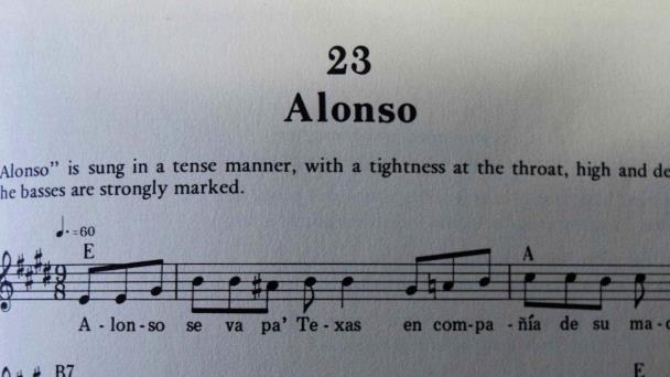 Partitura musical y lírica del corrido “La venganza de Alonso”, recolectada por el folclorista Américo Paredes.