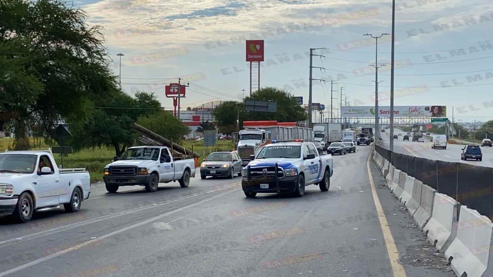 Le cierra camión paso y termina volcado en libramiento Monterrey