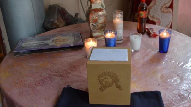 RESTOS. En una pequeña urna de madera reposan los restos mortales del hombre que perdió a su esposa e hijos y derrochó en alcohol la indemnización recibida por el accidente.