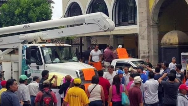 Pobladores del Municipio de Huauchinango, Puebla, retuvieron a empleados de la Comisión Federal de Electricidad en demanda de una mesa de negociación con la dependencia. Foto: Tomada de @VictorMCarreto