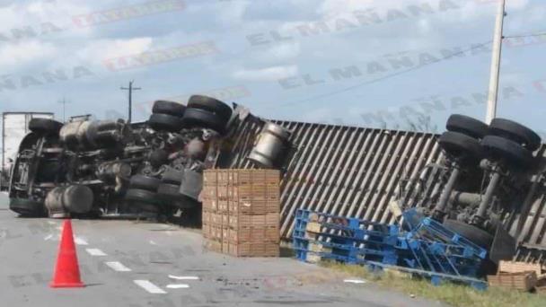 Tráiler cargado con limones se volcó en el kilómetro 110 de la carretera Victoria a Matamoros.