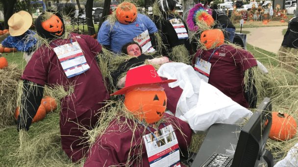 La directora del Dean Porter Park, Yoli Perez-Ayala, dijo que el personal construyó la parcela de calabaza y agregó espantapájaros, dando una ambientación muy peculiar de la temporada de otoño.