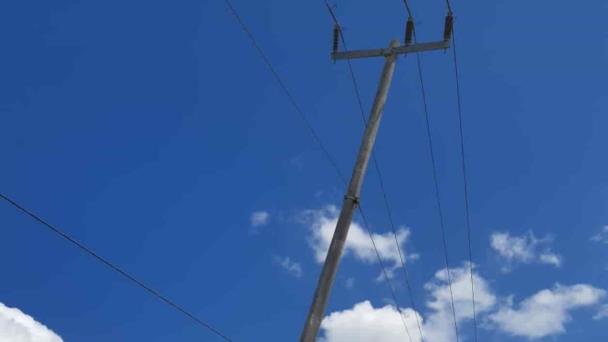 Residentes del fraccionamiento El Campanario hacen un llamado a las autoridades de la Comisión Federal de Electricidad (CFE) para que envíen cuadrillas a retirar o reinstalar un poste de energía eléctrica que está a punto de caer.