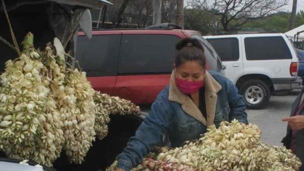 Mauri Castillo Loredo, residente de la colonia Benito Juárez, es una de los vendedores que cada año, en la recta final del invierno, logran hacerse de un dinero extra, recolectando y vendiendo estás flores.