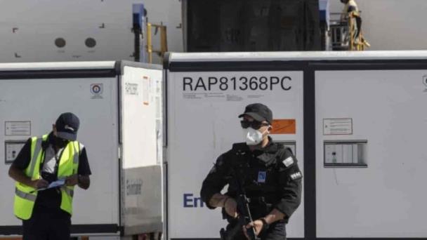 Los diez contenedores con las 1,919.800 dosis, que pueden ser almacenadas a temperaturas de entre 2 y 8 grados, fueron recibidos en el principal aeropuerto de la capital chilena por el presidente Sebastián Piñera, cuyo gobierno prevé arrancar con la campaña de vacunación masiva la próxima semana. El proceso de inmunización es voluntario y gratuito para todos.