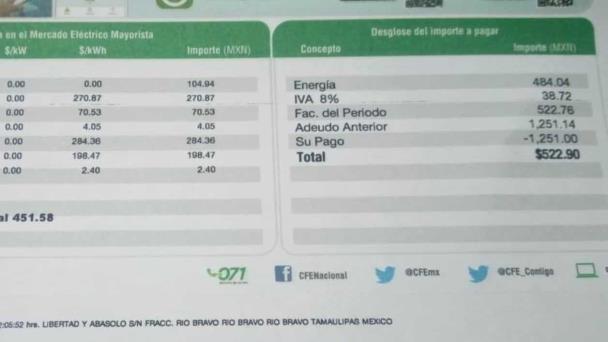 Llegan primeros recibos de CFE con IVA al 8%