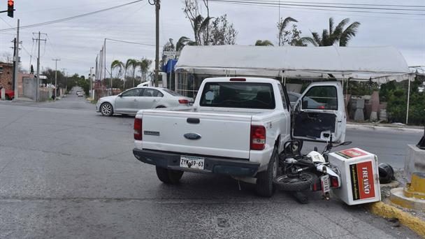 Una mala maniobra por un motociclista fue la causa de un accidente entre un repartidor de una refaccionaría con una camioneta.