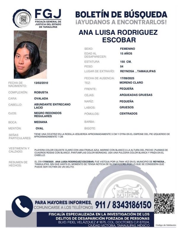El día de ayer se confirmó que la joven Ana Luisa, de 15 años de edad, había sido localizada con vida y que se encontraba ya con la familia.