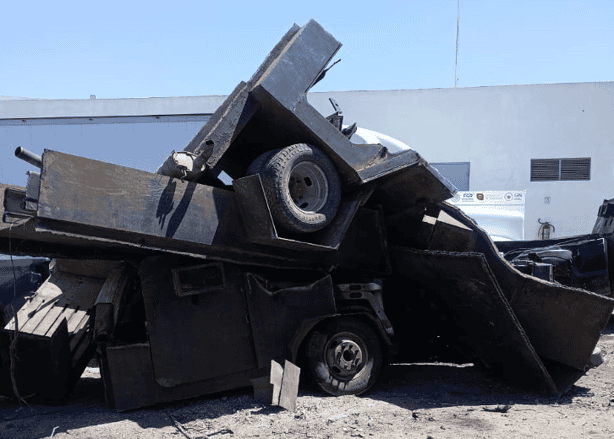 Un total de 32 vehículos con blindaje artesanal fueron destruidos en esta frontera por autoridades federales.