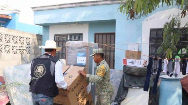En un esfuerzo conjunto, la Secretaría de la Defensa Nacional (Sedena) y la Secretaría del Bienestar (Sebien), bajo un programa de estricta logística llevan a cabo la entrega de enseres domésticos a familias afectadas por las inundaciones del 27 de marzo en Reynosa y Río Bravo, siendo hasta este día más del 60 por ciento de avance en la entrega de el apoyo federal casa por casa.