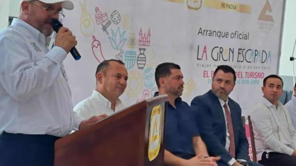 Gildardo López Hinojosa, presidente de la Cámara de Comercio, Servicios y Turismo a nivel local, dijo durante su intervención en el evento, celebrado, precisamente, en el Aeropuerto Internacional, que "Creo que vamos bien, es la primera edición de ´La Gran Escapada´ y vamos por 45 mil millones de pesos a nivel nacional y, bueno, para nosotros como comercio, como organismo, es algo que nos beneficia, nos alienta aún más a seguir invirtiendo, a seguir en el comercio, en la formalidad de los negocios con el firme propósito de atraer turismo a Reynosa".