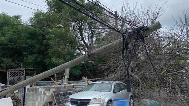 Montones de cables quedaron colgados de manera peligrosa en toda el área y algunos trozos de madera apenas logran sostener la parte superior de dos postes que debido al mal estado en el que ya se encontraban, se partieron a la mitad, además de la mufa de una de las viviendas que resultó severamente dañada.