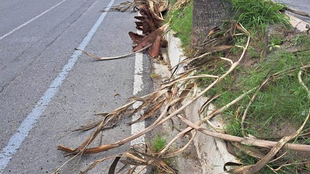 Regadas por doquier se ven regadas las ramas que se desprendieron de su lugar por falta de mantenimiento a las palmas ubicadas por carretera Ribereña