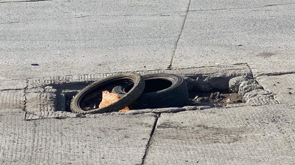 En casi todos los sectores de la ciudad se aprecian baches de todos tamaños, incluyendo enormes zanjas que son rellenadas con neumáticos viejos para impedir que los automovilistas sean "cazados" por estas "trampas urbanas".