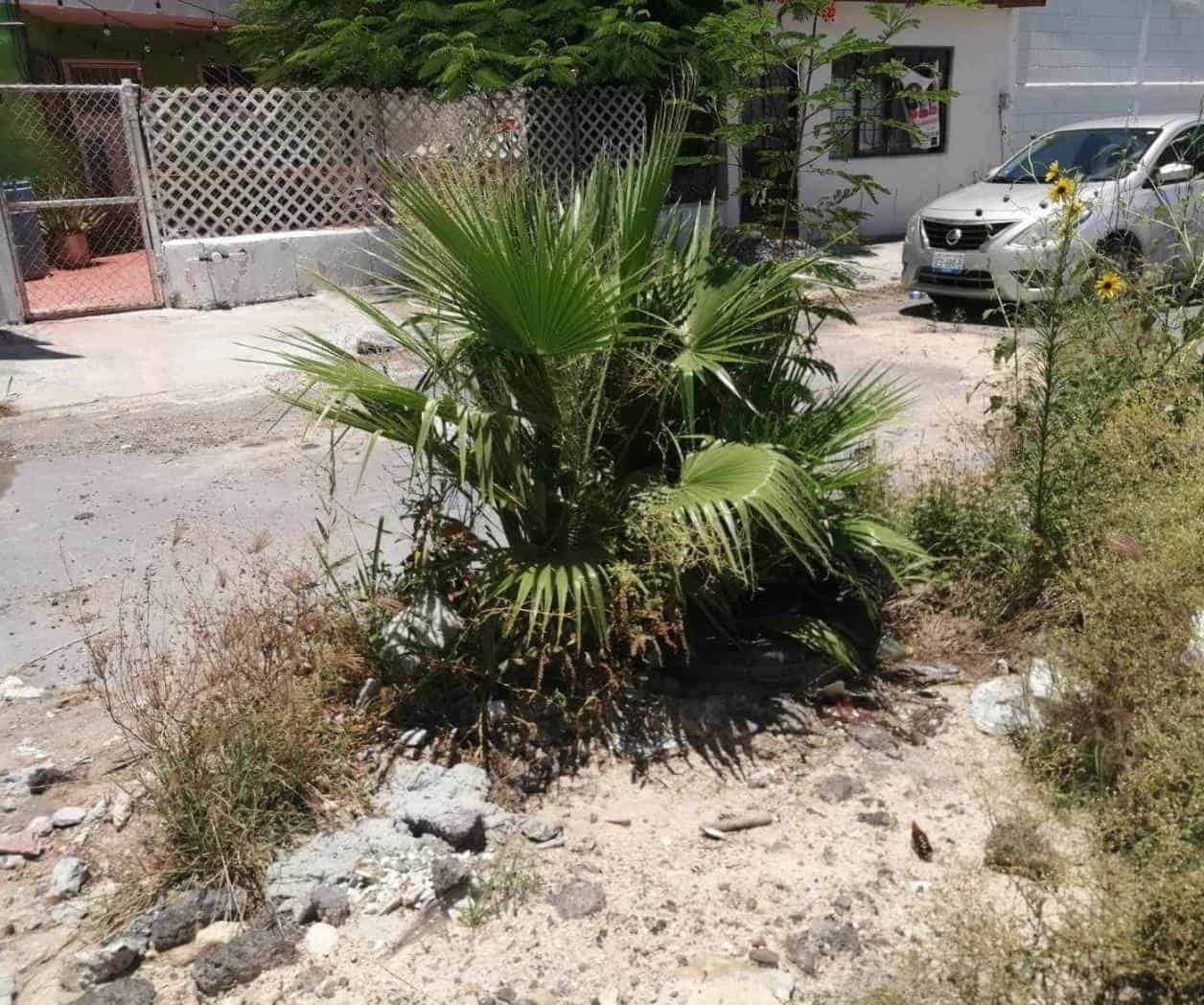 Un área de la calle Padre Mier, en la colonia Del Valle se ha convertido en una jardinera, en donde incluso crecen palmeras en medio de la vialidad, que así ha permanecido desde hace varios meses, ante una obra inconclusa en la red de drenaje sanitario.