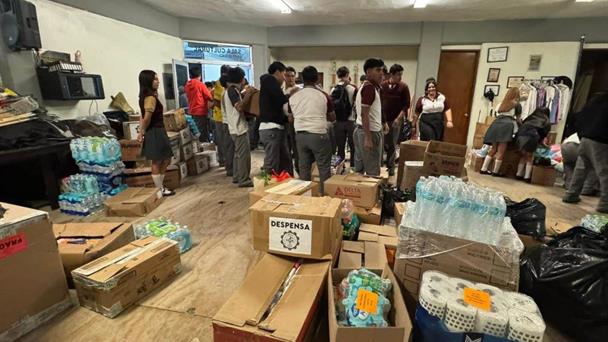 Los estudiantes y maestros, no solo apoyaron con víveres, también organizando y apoyando con el acomodo de las donaciones.