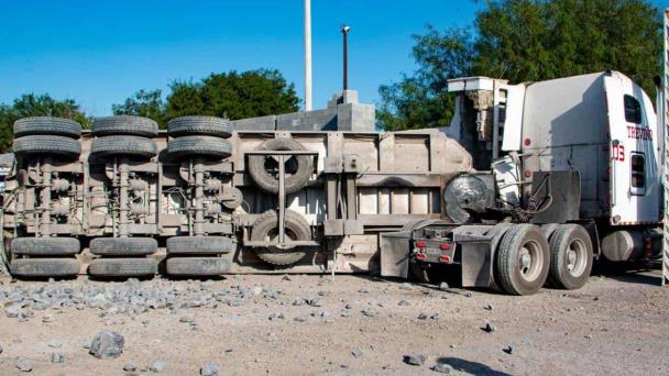 El accidente se registró en el Ejido Estación Anzaldúas justo en el kilómetro 10 de la carretera ribereña, donde el chofer del tractocamión entregaría 70 toneladas de piedra en un rancho privado a fin de realizar trabajos para emparejar el terreno.