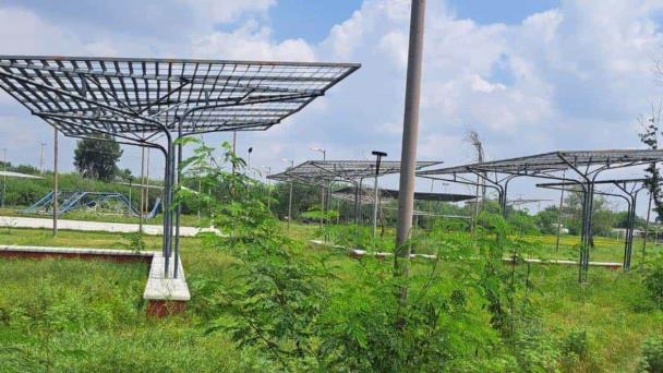 Techados metálicos sin lona, es lo que puede verse también en el área verde que está olvidada por parte del municipio.
