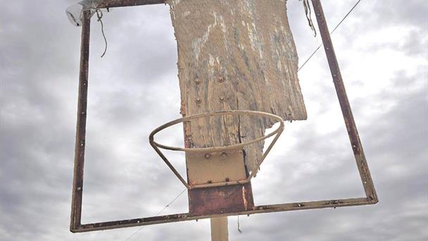 Precisamente por falta de mantenimiento, en una de las canastas ya desapareció por completo el tablero de madera y en la otra, apenas cuenta con un trozo que lo hace también infuncional.