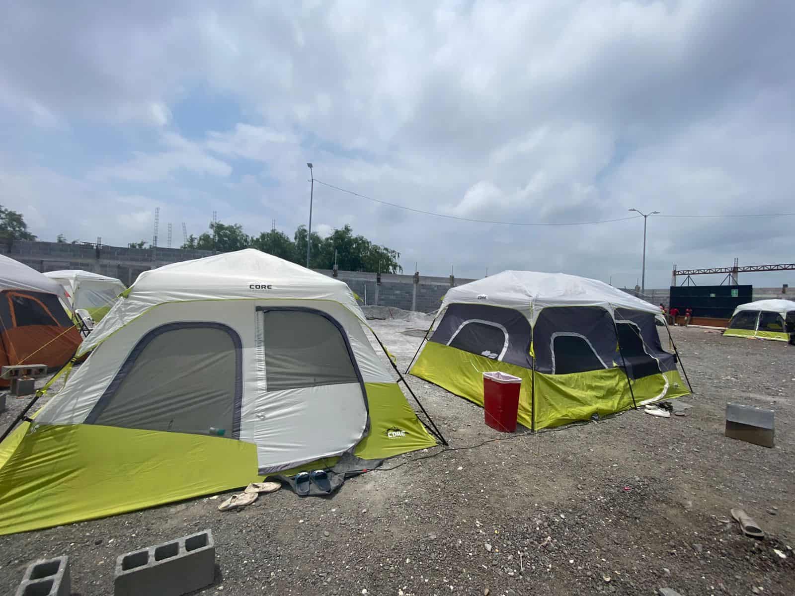 Las familias viven adentro en casas de campaña con sus hijos, se alimentan y visten de donativos.