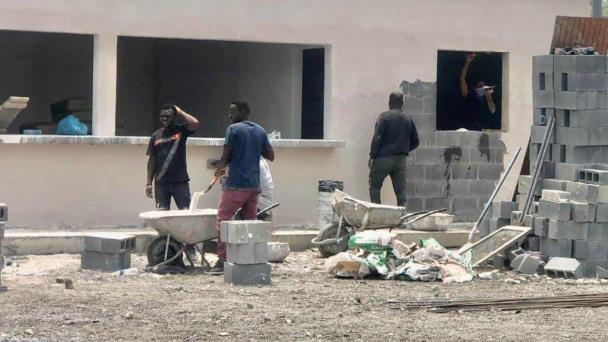 Sin recibir salario, haitianos que han llegado a esta ciudad fronteriza para tramitar asilo en Estados Unidos, se encargan de construir el nuevo refugio “Senda de Vida II”.