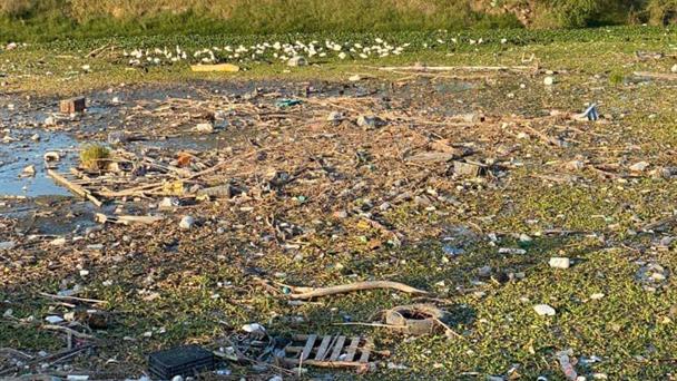 Además es posible observar una gran cantidad de basura flotante y acumulada en las orillas del cuerpo de agua, entre ellos refrigeradores, restos de salas y muebles en desuso