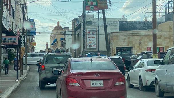 Caos y embotellamiento se observa en las calles aledañas al primer cuadro de la ciudad de Reynosa.