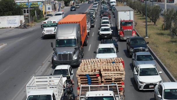 - La fila de vehículos superaba ampliamente el puente peatonal ubicado frente a la colonia Margarita Maza de Juárez y se extendía hasta el puente cercano al cuartel, donde el tráfico comenzó a circular por debajo del mismo.