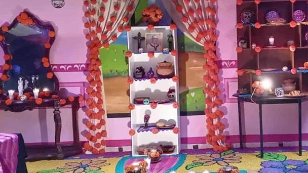 Cada año, este plantel educativo realiza como ya es una tradición uno de los altares de muertos más grandes, ya que decoran un salón completo.