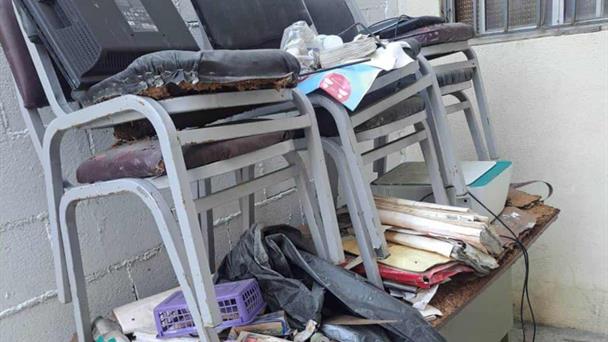 Como mudo testigo, se encuentran aún afuera de supervisiones escolares, sillas, escritorios y mobiliario que se perdió por las torrenciales lluvias.