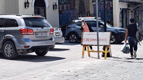 Abusivos cobran por parar vehículos en parte de la banqueta que es vía pública.