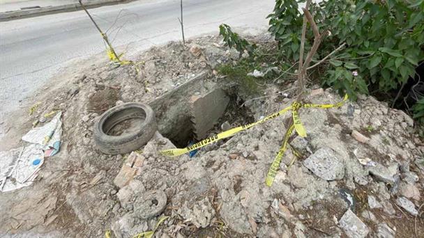 De acuerdo con los reportes ciudadanos, las fugas se localizan principalmente en la intersección de las calles José María Morelos y Marte R. Gómez, donde además se observan dos huecos de considerable profundidad. Dichos hundimientos se encuentran delimitados únicamente con cinta amarilla y algunos trozos de madera, lo que representa un riesgo latente tanto para peatones como para automovilistas que transitan por la zona.