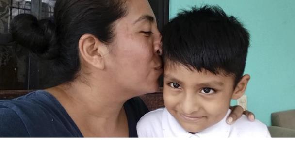 La madre de familia le da un beso a su hijo, mientras hace un llamado a los padres de familia a no conformarse con un solo diagnóstico y buscar siempre segundas opiniones médicas.