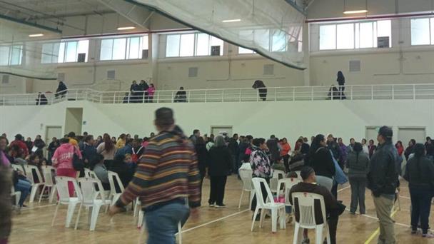En total había como 2,000 o 2,500 personas dentro del Polideportivo esperando turno para cobrar su dinero, cantidad que se les hace llegar cada seis meses a los Comités de Mejoras que operan en los ejidos de la ciudad.