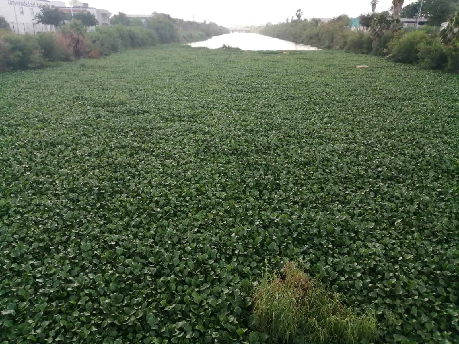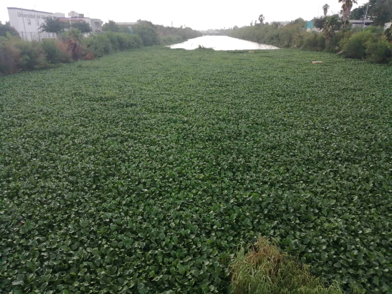 Grandes extensiones de Lirio acuático formado en el manto de agua del Canal Anzaldúas amenazan el ecosistema de este cuerpo de agua esencial para Reynosa.
