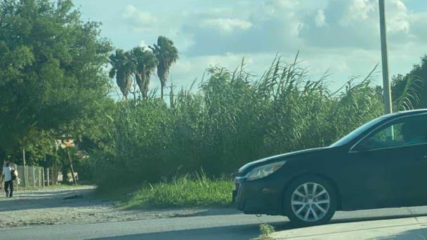 La maleza crece de y obstruye cada vez más la visibilidad a los conductores que transitan por el tramo de la calle Manuel Tarrega, el cual recorre la lateral del canal Guillermo Rhode en la ciudad de Reynosa.