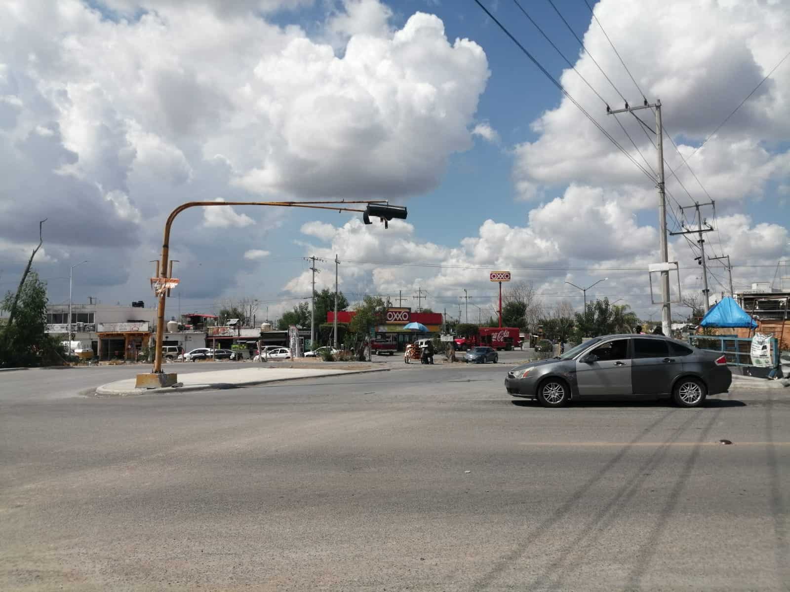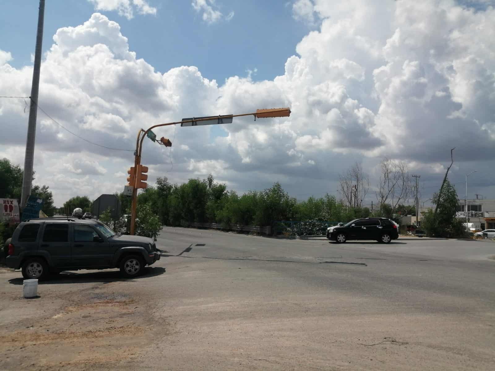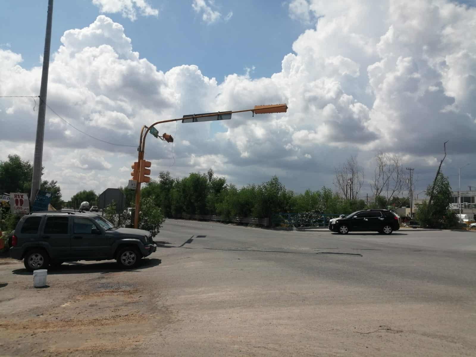 El crucero de Viaducto Reynosa y Carretera a San Fernando y Monterrey en Fraccionamiento Bugambilias lleva meses sin apoyo de semáforos,