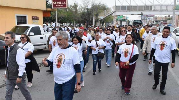 Un numeroso contingente integrado por matachines, además de decenas de fieles devotos avanzaron por el bulevar Hidalgo rumbo a su destino