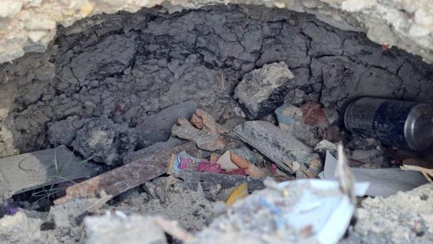 La gente, en el afán de restarle peligrosidad al agujero que aún existe ahí y ante la falta de respuesta por parte de la autoridad correspondiente, lo ha venido rellenando con desperdicios.