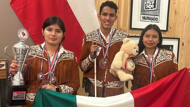 Los estudiantes Tapne Alexandra Basurto Román, Jonathan Roberto Yáñez Ávalos y Estrella Analí Mora Reyes, del Centro de Estudios Tecnológicos Industrial y de Servicios número 71 de Reynosa, obtuvieron el Primer Lugar Mundial en el Mundial de Ciencias y Tecnología Escolar 2025, celebrado en Chile.