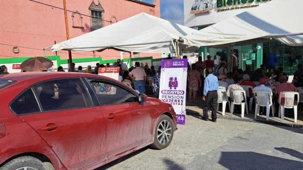 Cada vez llegan más personas a cobrar a las sucursales del Banco Bienestar, desde becas Benito Juárez hasta apoyos económicos para discapacitados así como también los adultos mayores que acuden por su pensión, por lo que hace falta colocar más sillas y también por lo menos otro toldo.