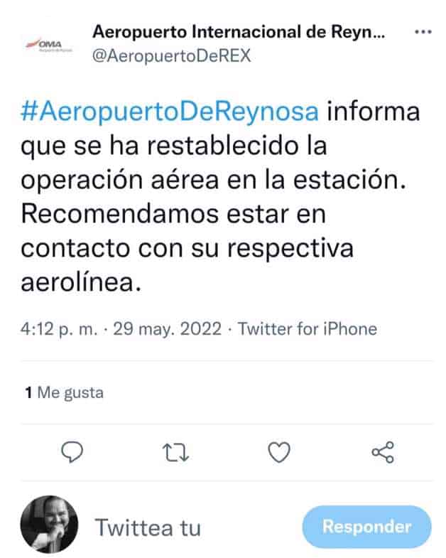 El Aeropuerto Local de Reynosa ha solicitado a los usuarios verificar con las líneas aérea contratadas lo referente a los horarios diferidos de sus vuelos para compensar la demora de ayer domingo.