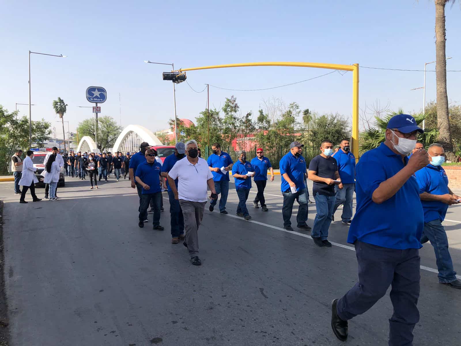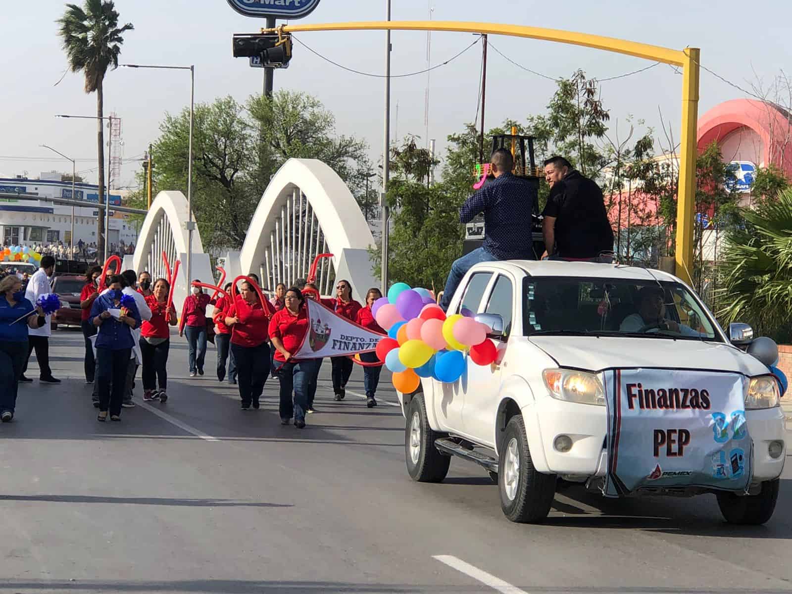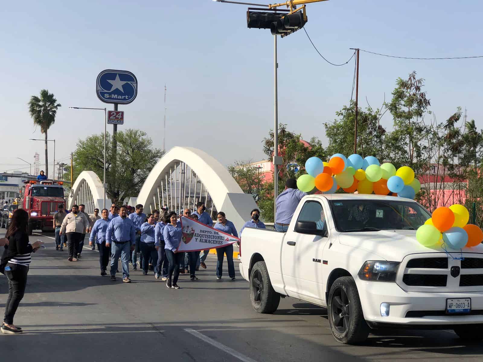 Los grupos de trabajadores circularon en carros alegóricos, con música y leyendas sobre el Bulevar Morelos hacia J.B Chapa, rumbo a la presidencia municipal.