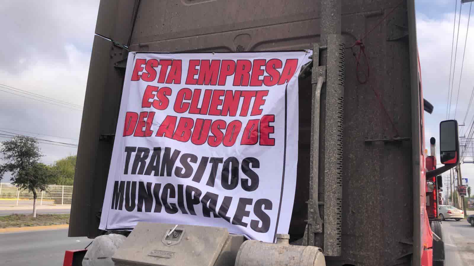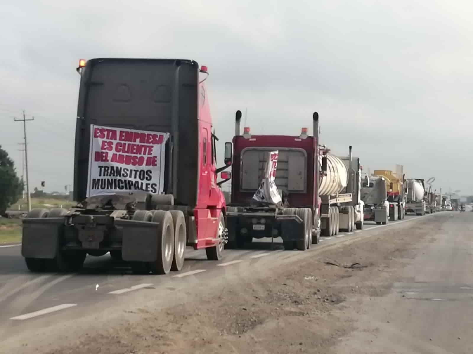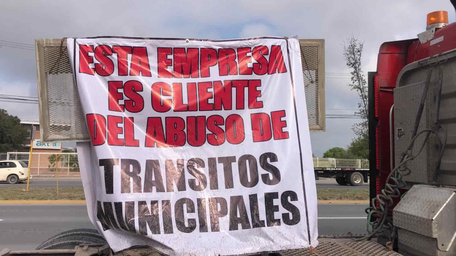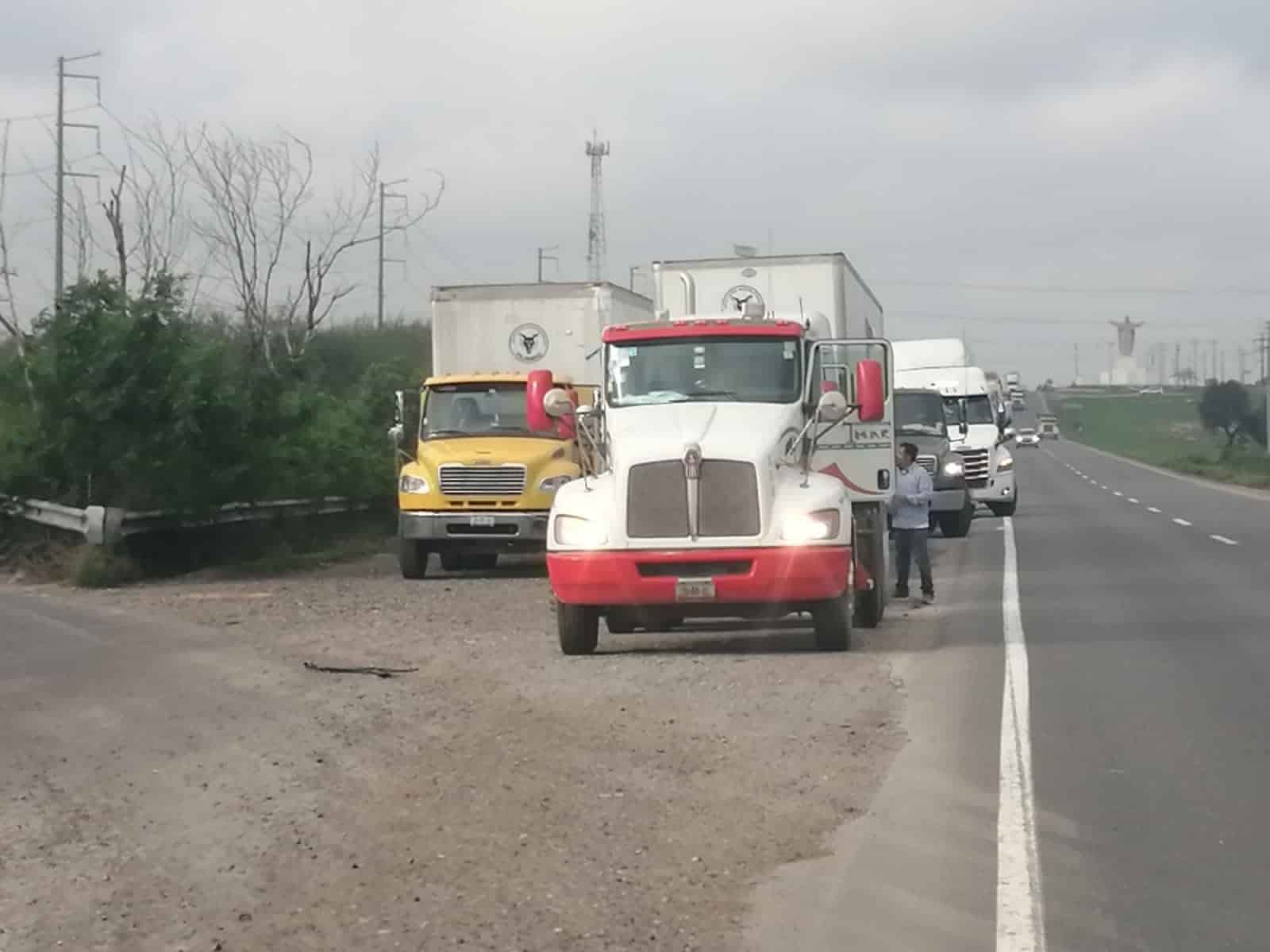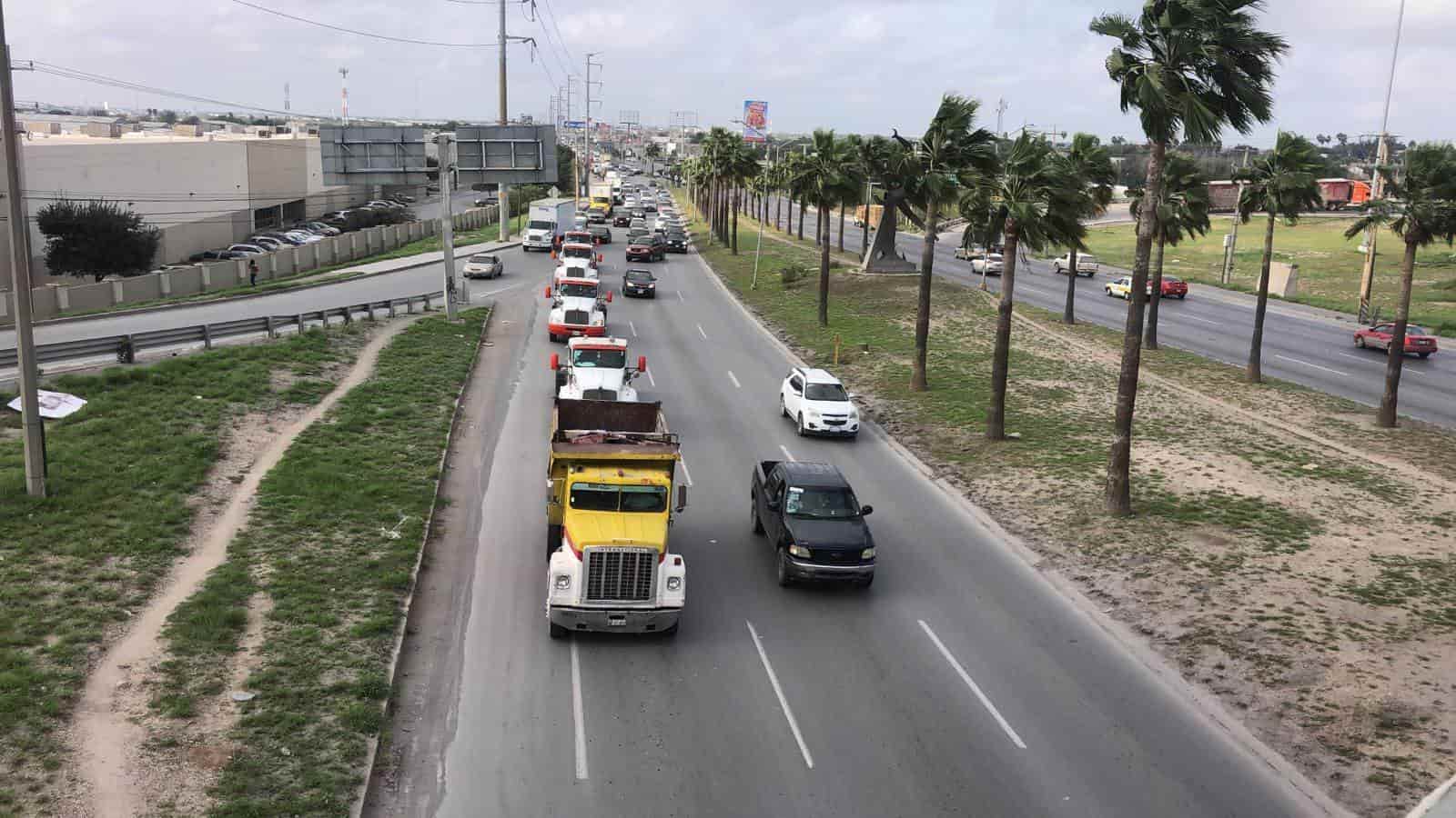 Alrededor de 300 camiones de carga comercial participan esta mañana en Reynosa, en una protesta móvil por las principales avenidas de la ciudad, en donde sus demandas son la destitución del Coordinador de Tránsito Municipal, Mario Soria Stamatio, y la oposición al cobro de un impuesto por circular en la ciudad.