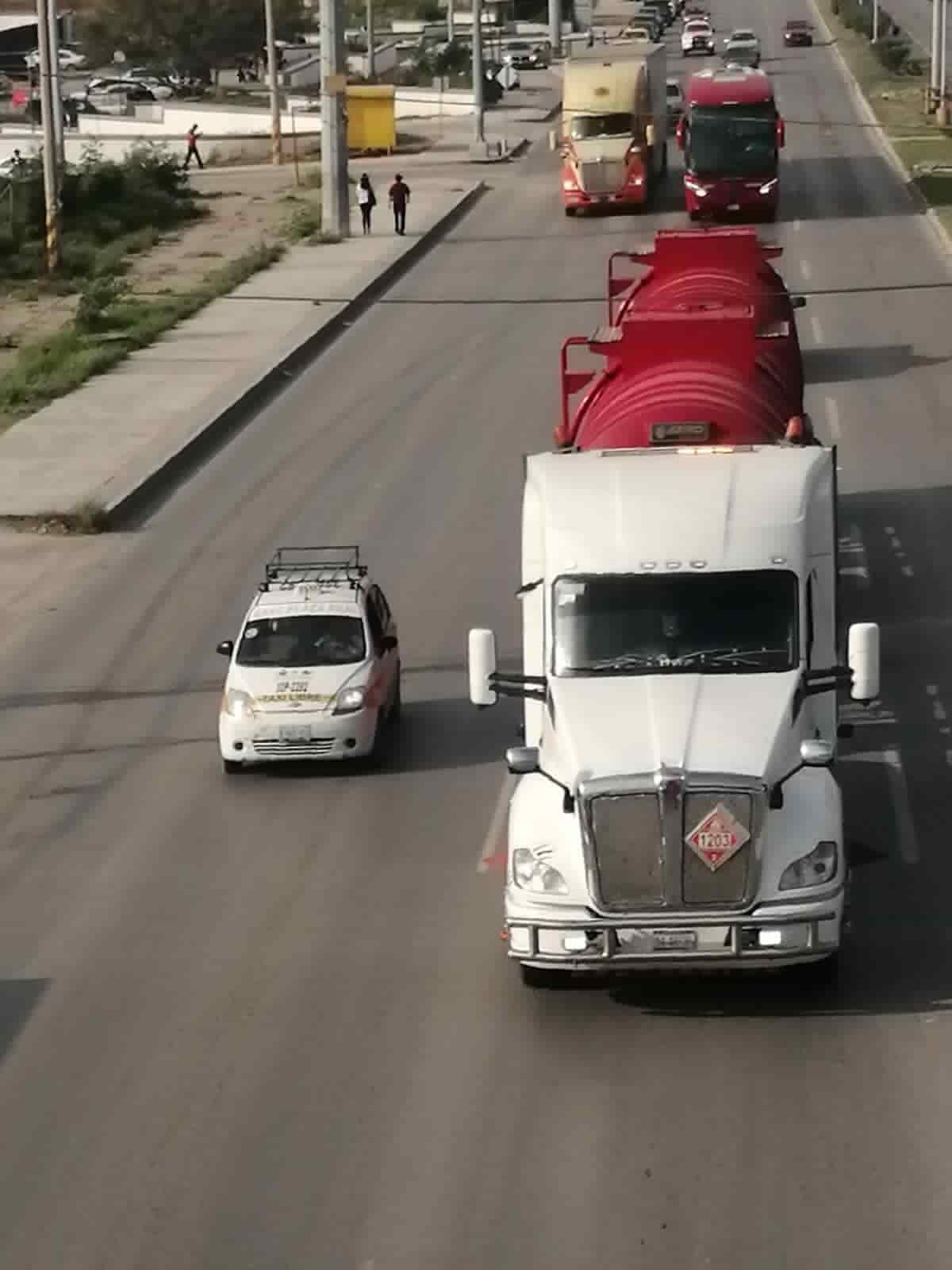 La movilización de camioneros por la ciudad marcha rumbo a la Delegación de Tránsito Municipal, en donde harán una protesta y emitirán un pronunciamiento al término de esta protesta.