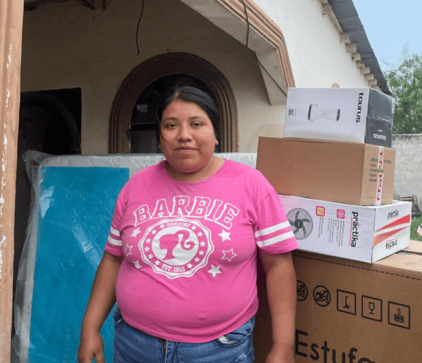 En la colonia Ernesto Zedillo, la señora Dionisia García no pudo evitar las lágrimas al recibir sus enseres. "Yo lloré al ver mis cosas bajo el agua. Recuerdo, mi hijo me decía: ´Mamá, no llores, son cosas materiales´, pero uno los compra con tanto sacrificio. Gracias a nuestra presidenta Claudia Sheinbaum", expresó con emoción.