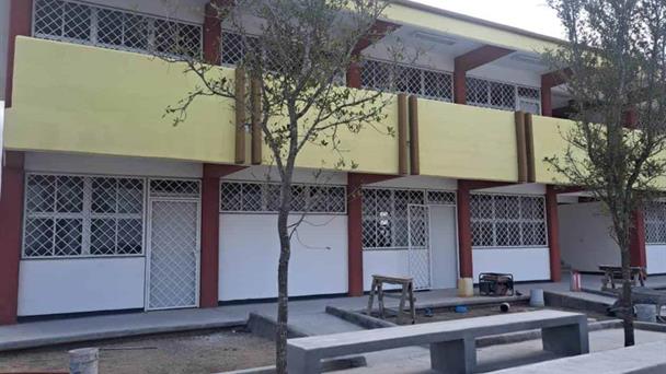 La construcción del plantel educativo ya fue concluida y actualmente se afinan detalles finales, mientras alumnos y docentes esperan el equipamiento para iniciar clases