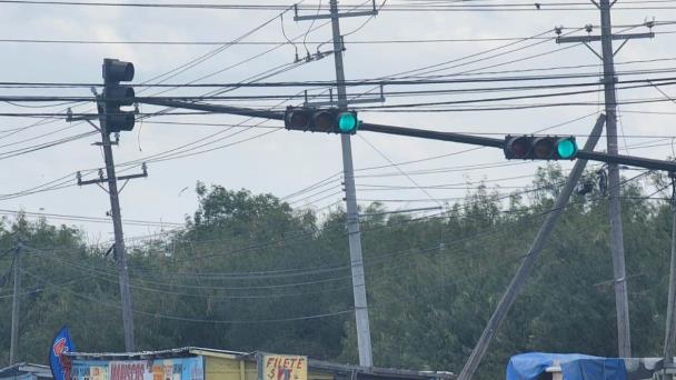 Semáforo con luz volteada en carretera a San Fernando dificulta la visibilidad y representa un riesgo para los conductores.