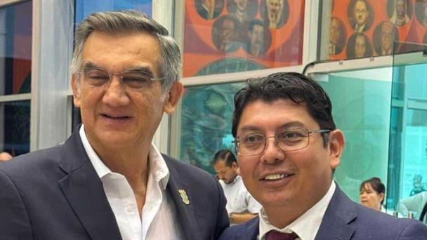 Marcelo Olán Mendoza con el gobernador de Tamaulipas, Américo Villarreal Anaya.