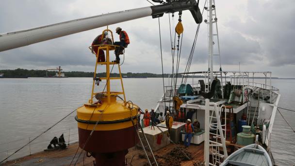 AUXILIO. Miembros de una nave de rescate se preparan a partir del Puerto Kumai, en Pangkalan Bun, Indonesia, para unirse a la búsqueda de partes del avión de AirAsia y víctimas.